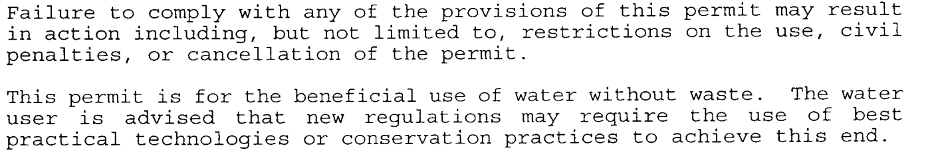The State was not informed of the District’s diversion of water over and above the permitted amount. The possible penalties documented in the Permit for non-compliance are: