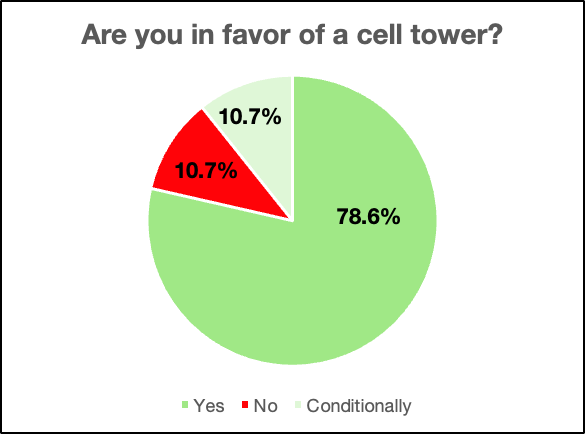 89% of respondents were in favor OR conditionally in favor of a cell tower. 11% are not.